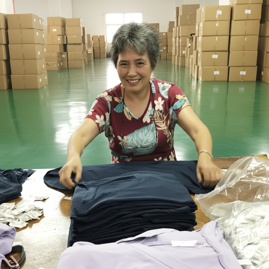 He used to be a soldier, had 10 years of experience in the army, and he developed a habit of being careful and careful.For the apparel industry, he is a newcomer with only 3 years of experience, but this does not affect his work in the least. The daily work is to check each product and pack it according to customer requirements. Not only is he hardworking, but he has great personality.
